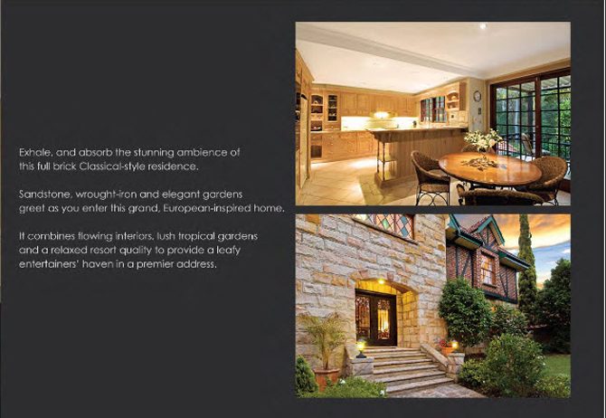 This is real estate advertorial with a difference: each luxury home gets its own glossy brochure. We were commissioned to inspect homes and interview the vendors before writing compelling and succinct sales copy to an inflexible word count.